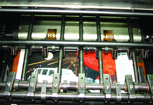 3. প্রেসে একটি ভ্যাকুয়াম সাকশন টেবিলের সাথে সংযুক্ত একটি ক্রমাগত পেপার ফিডিং মডিউল রয়েছে যার উপর তিনটি ঘূর্ণায়মান কাগজ পরিবহন বেল্ট ইনস্টল করা আছে। এই জাতীয় কাগজ পরিবহন ব্যবস্থা নির্ভরযোগ্যভাবে বিস্তৃত বেধের বিভিন্ন ধরণের কাগজ পরিবহন করতে পারে।